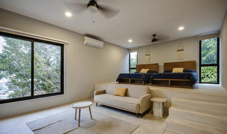 Los materiales naturales, como la rajuela y la carpintería de estilo Yucateco, se integran orgánicamente, evocando tradición, calidad y sofisticación. Aquí, cada rincón respira calma, cada textura conecta con la tierra.