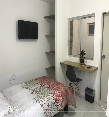 Cuenta con 5 habitaciones con su propio baño amuebladas tipo estudio