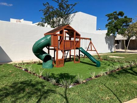 Casas residenciales con áreas de esparcimiento como: parque con juegos infantiles, áreas verdes, terraza social techada con medio baños de hombres y mujeres, ciclo pista infantil, piscina con chapoteadero integrada, duchada exterior para servicio de piscina.