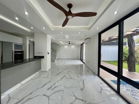 -Sala comedor con vista a jardín y alberca