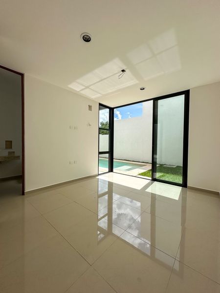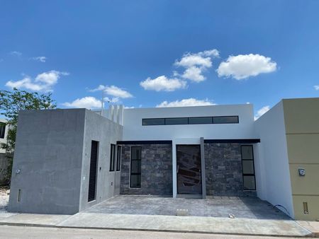 Casa de una planta en la Privada Praderas del Mayab, la privada cuenta con casa club con amplia y hermosa piscina, área de juegos infantiles, gimnasio, cancha de pádel, salón de eventos, salón de juegos con mesa de ping pong, futbolitos.