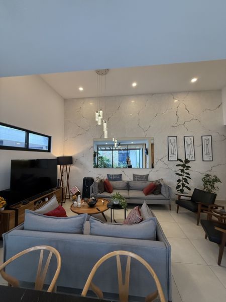 -Sala a Doble Altura con hermoso diseño de Palladium en la Pared .