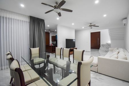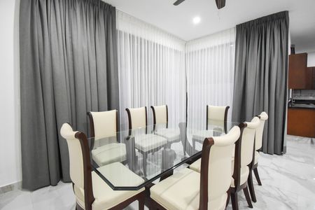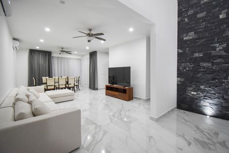 La hermosa fachada de esta propiedad, moderna y acogedora, despierta la agradable sensación de llegar al hogar; sus finos acabados y tonos cálidos que generan una sensación de confort. Al interior, se encuentran espacios amplios y acabos de lujo; inspira desde cualquier ángulo de la planta baja, la vista hacia al área verde. Pasar tiempo con la familia en la cocina, será una experiencia de confort y disfrute ya que se han optimizado los espacios de tal forma, que sean muy eficientes y de buen gusto.