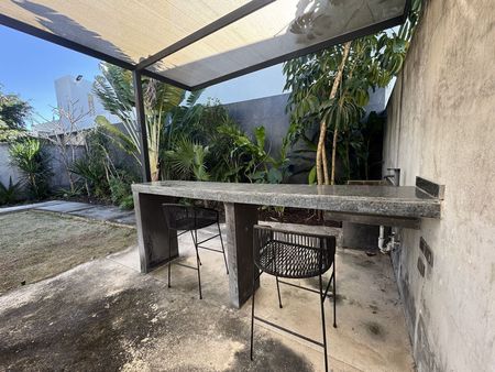 • Patio con terraza techada con malla sombra, asador, lavabo y barra de granito