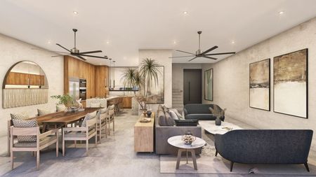 desarrollo. En Carmela, el aburrimiento nunca será una opción. Con su idílico jardín interior y piscina, invita a organizar las mejores reuniones, mientras mantiene la privacidad familiar. Sus amplios ventanales y espacios inspiran al disfrute y crean una espectacular sensación de libertad completa.