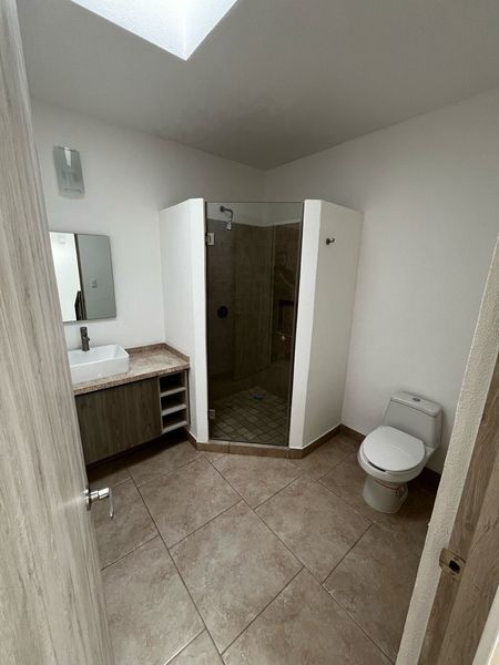 Estacionamiento para dos autos, medio baño, sala y comedor, cocina con área de lavado y bodega, patio de al rededor 36 m2, en planta alta 3 área de tv o estudio, las dos recamaras secundarias con espacio para cama Queen, closet con buena distribución, la habitación principal con vestidor y baño completo, espacio para recamara King grande.