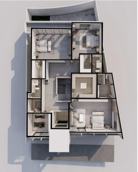 Segundo nivel: Estancia, 3 recámaras con baño vestidor (Rec. principal con acceso a terraza), área de terraza abierta y gimnasio con sauna / bodega.