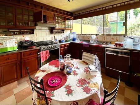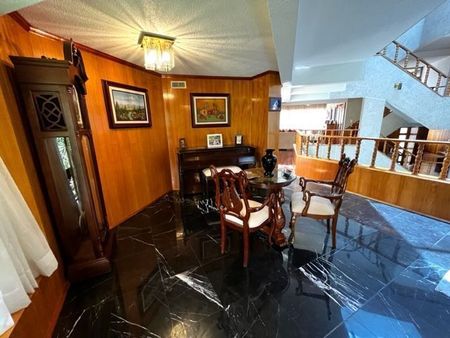CON DOBLE SEGURIDAD, CASA MUY BIEN CONSERVADA, CON BUEN PROYECTO Y MUY COMPLETA, ya que cuenta con 4 recámaras cada una con baño, sala de tv, salón de juegos con baño completo y salida al jardín, estudio, desayunador, cocina amplia, cuarto de servicio y de lavado, y 5 estacionamientos. La casa tiene excelente orientación (ote-pte.) lo que le da muy buena temperatura e iluminación.