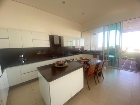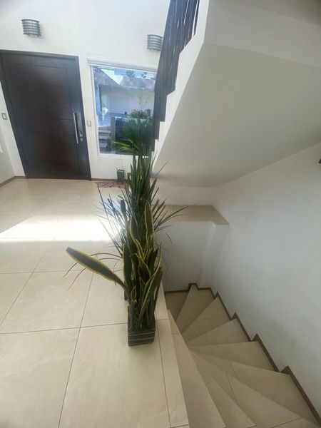 La casa cuenta con 4 recámaras, 6 baños y medio, estancia sala comedor.