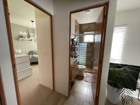 Segundo nivel: Recámara principal con baño completo y vestidor. Segunda y tercer recámara con closet y comparten baño completo, Sala de televisión y/o estudio.
