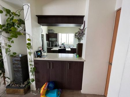 Primer nivel: Sala, comedor, cocina equipada, medio baño de visitas, cuarto de servicio y cuarto de lavado.