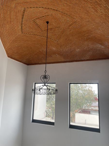 CLOSET, SALA DE DOBLE ALTURA,TECHO CON CUPULA DE CUÑA CUÑA, 2 ESCALERAS, LA PRINCIPAL QUE SUBE AL SEGUNDO NIVEL Y OTRA SECUNDARIA DE CARACOL.