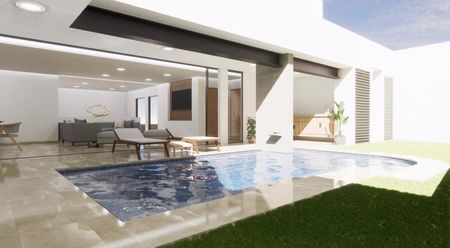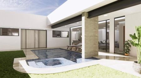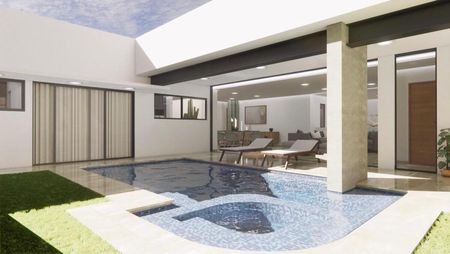 Alberca con jacuzzi integrada en el diseño, ideal para relajarse durante todo el año.