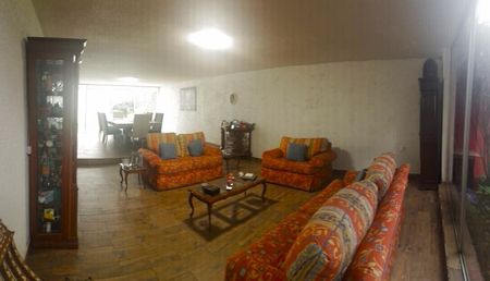 Cuenta con una superficie de 184 m2 de terreno y 366 m2 de construcción, con 5 recámaras, la principal con clóset vestidor y baño, 3 y medio baños, amplia sala comedor con grandes ventanales a ambos jardines, cocina integral, antecomedor, despensa, clóset de visitas, jardín al frente y atrás, estudio, amplísimo Family Room con clóset, patio de servicio interior, bodega, área de lavado, cuarto de servicio con baño completo, escalera de servicio, cisterna de 10,000 lts., 2 tinacos de 1,100 lts. cada uno y tanque de gas estacionario de 300 lts. Impermeabilizada recientemente.