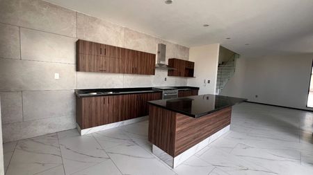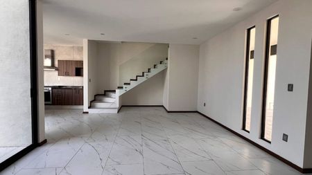 Cuenta vestíbulo, sala /comedor, cocina integral con barra desayunador y alacena , 1/2 baño para visitas, bodega, jardín y cochera para 2 autos.