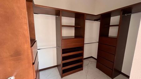 Tiene 3 recamaras cada una de ellas con baño completo, la principal cuenta con un vestidor amplio y la segunda recamara también cuenta con vestidor, la tercera recamara cuenta con closet, Hall para T.V.