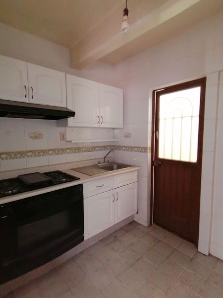 6. DEPARTAMENTO 1 CON ESCALERA INDEPENDIENTE: CON 2 HABITACIONES CON PISO DE DUELA Y CLOSET, BAÑO COMPLETO, SALA-COMEDOR, COCINA INTEGRAL Y PATIO PEQUEÑO.