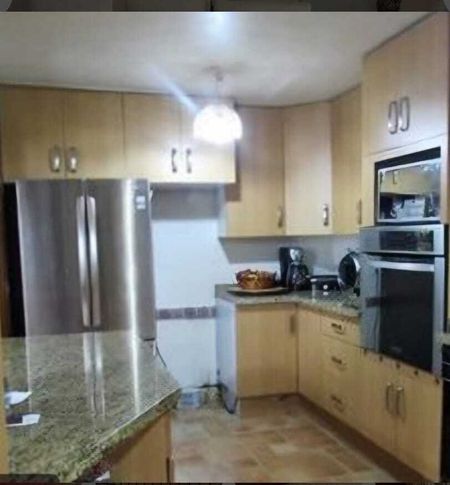 PB- Recibidor, Sala, comedor, cocina integral de granito con barra desayunador, 1/2 baño, cuarto de servicio con baño y garaje para 2 autos.