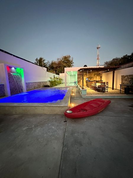 Alberca de7.5mx4.5my 1.5h con acabado chukum, fuente iluminación