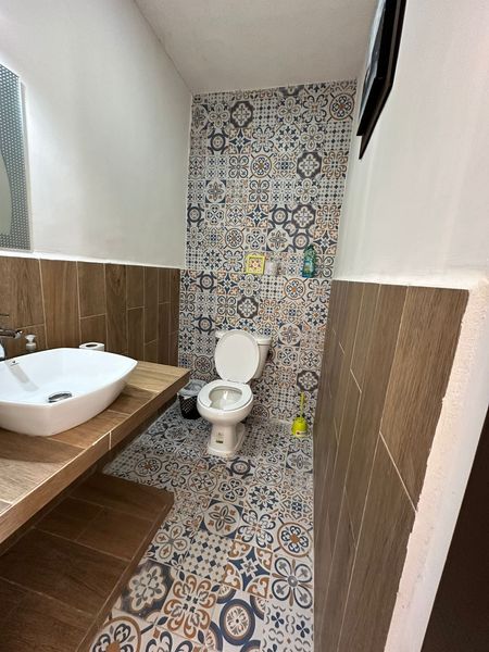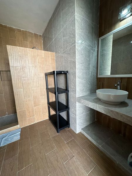 Barcon barra techado con tejaban, tarja y niveles debajo de barra (todo enlosado)
