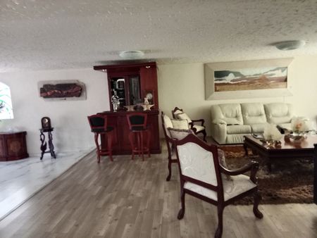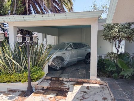 En exteriores, el jardín de 200 m² te conecta con la naturaleza: palapa, pérgola, terraza, asador, cascadas y jacuzzi crean un ambiente ideal para reuniones o descanso. La casa cuenta con chimenea, gimnasio, bodega amplia, cuarto de servicio, cochera techada para 3 a 4 autos, y una cisterna de 10,000 litros para total autonomía. Sistema de seguridad con portero y puerta eléctrica.