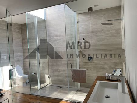 Con vestidor y baño con vista espectacular, 2 recamaras mas con vestidor y comparten baño. Terraza con alberca con barra para hacer comidas , cuarto que puede usarse como recamara independiente con vestidor o baño o como gym o area de yoga, salida a la trotapista.