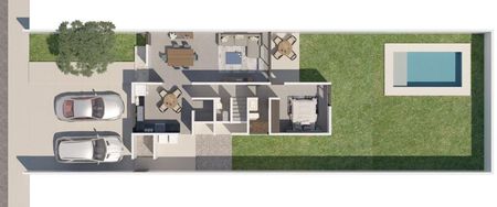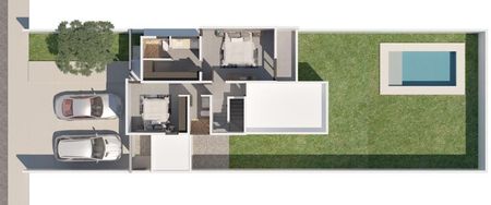 • Piso de concreto en la cochera con acabado final de color concreto lavado