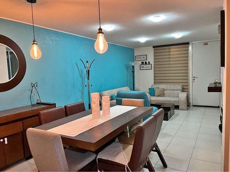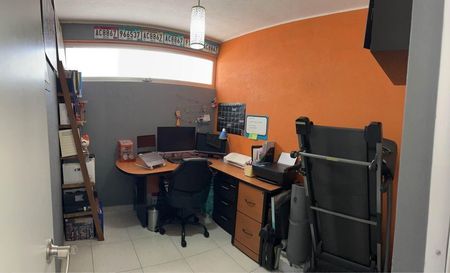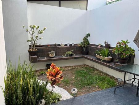 Cuenta con espacio de sala, comedor, cocina integral, patio trasero con jardín, área de estudio.