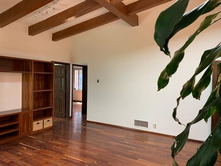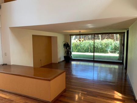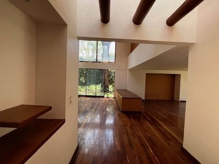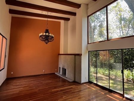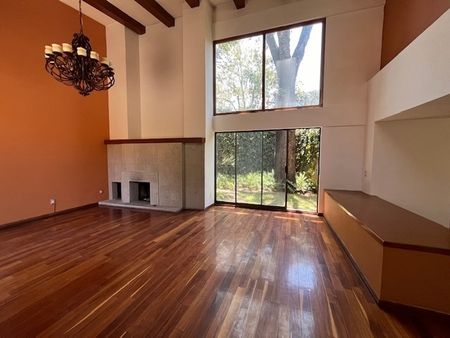 Techos de triple altura, doble ventanal de piso a techo con vista al jardín que rodea la casa, techos con vigas de madera en el techo, piso de madera. Cuenta con calefacción de gas.