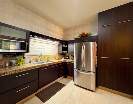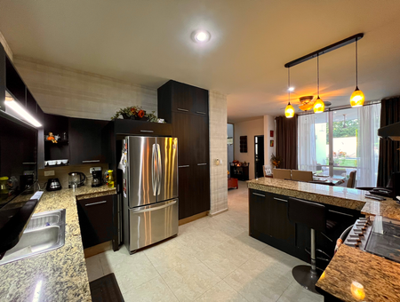 • Cocina equipada c/estufa Whirpool de 6 quemadores+horno; campana Teka; Refrigerador LG de 2 puertas; Microondas; carpintería superior e inferior; Pantalla para monitoreo de circuito cerrado c/6 cámaras de vigilancia.
