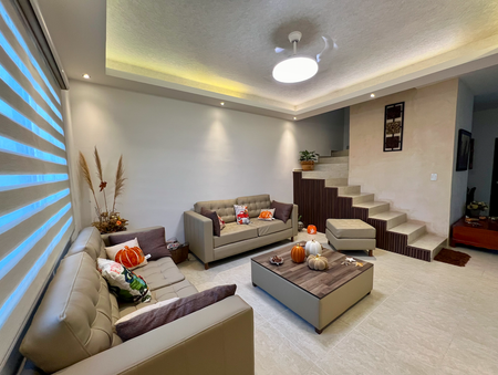 • 6 ventiladores decorativos en sala, comedor y recámaras. 1 ventilador en terraza trasera.
