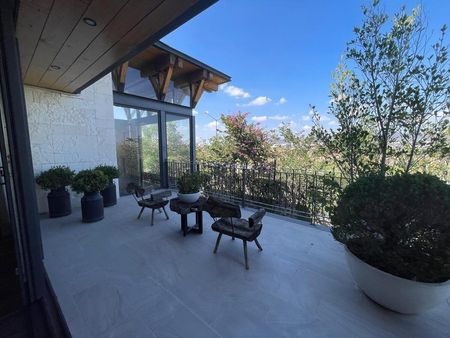 Un increible jardin con terraza techada
