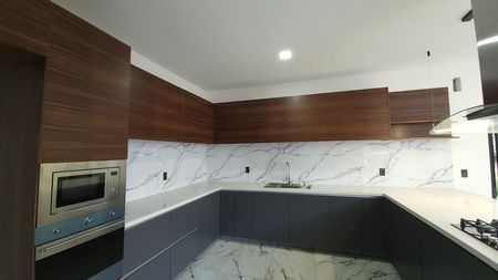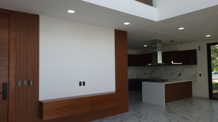 Lavabos, cocina integral y barra de cuarzo. Apagadores inteligentes marca TECNOLITE.