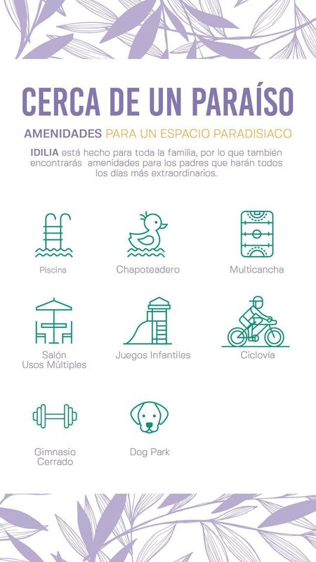 En IDILIA, la calma y la diversión se unen para ofrecerte el lugar perfecto donde la vida diaria se convierte en una experiencia extraordinaria. Es el espacio ideal para explorar con tu familia y aprovechar todas las oportunidades de recreación que este desarrollo tiene para ofrecer.