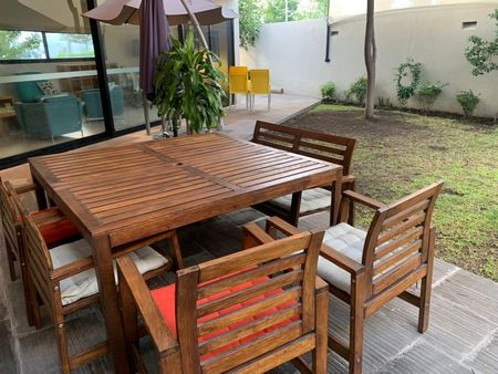 Sala, comedor que se Integran a un jardin central de buen tamaño con arboles grandes lo que la hace un area muy agradable.