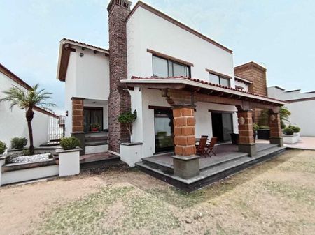 En venta esta impresionante residencia ubicada en la exclusiva zona de Pedregal de Querétaro, conocida por su privilegiada ubicación céntrica, a solo 10 minutos de los Arcos y a un minuto de la calle Bernardo Quintana. Esta elegante casa de dos plantas se distingue por su diseño luminoso, con amplios ventanales que ofrecen vistas al extenso jardín. Este espacio exterior cuenta con jacuzzi, un baño completo y área social ideal para eventos familiares.