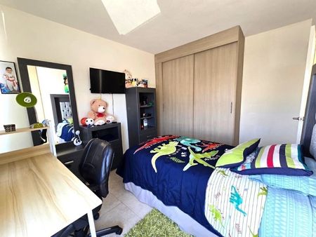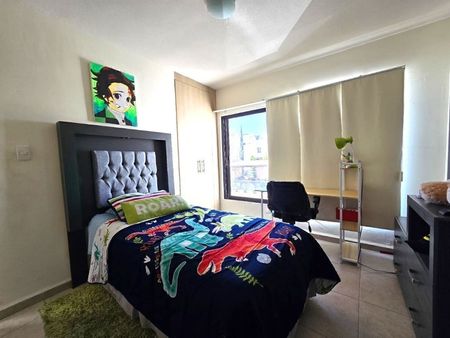 El condominio cuenta con amenidades como alberca, área de juegos infantiles, gimnasio, cancha de basquetbol, áreas verdes y salón de usos múltiples.