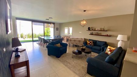 Al ingresar, te recibirán la espaciosa sala y el acogedor comedor, ambos diseñados para la comodidad y el entretenimiento. La cocina, de diseño abierto, está equipada con modernos electrodomésticos y elegantes acabados, ofreciendo un espacio perfecto para preparar deliciosas comidas familiares. Desde el comedor, puedes acceder al jardín, un rincón verde donde puedes disfrutar de actividades al aire libre y momentos de relajación.