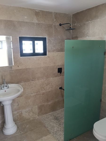 -Puertas de tambor en todas las recamaras, baños y bodega. -Puerta de aluminio negro con vidrio en casa de huéspedes y baño de visitas.