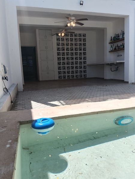 -Dos recámaras que comparten un baño y cada una cuenta con balcón, una de ellas con una pérgola con vista a la alberca.