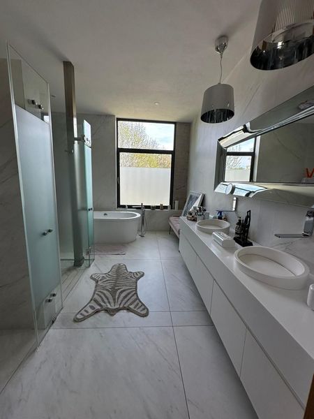 En planta baja cuentas con una cochera para varios coches, con dos bodegas muy grande y pasillo para llegar directo al jardín sin necesidad de meter a nadie por la casa, tiene un hermoso recibidor que desde que entras se respira frescura, mucha luz ya que toda la casa está rodeada de vidrios de piso a techo con vista al jardín en todo momento.
