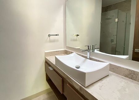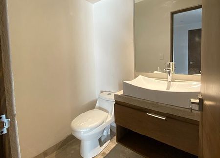 Planta baja: recámara principal con vestidor, baño y terraza, 1 recámara secundaria con baño y closet, cocina integral, medio baño, cuarto servicio, área de lavado y terraza amplia.
