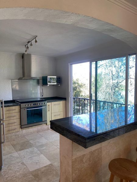 Moderna cocina con cubierta de granito, perfecta para quienes disfrutan del diseño y la funcionalidad