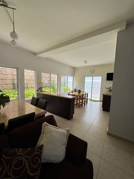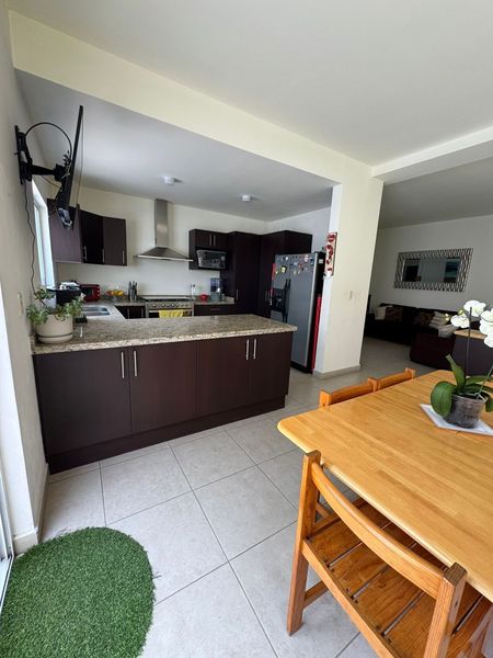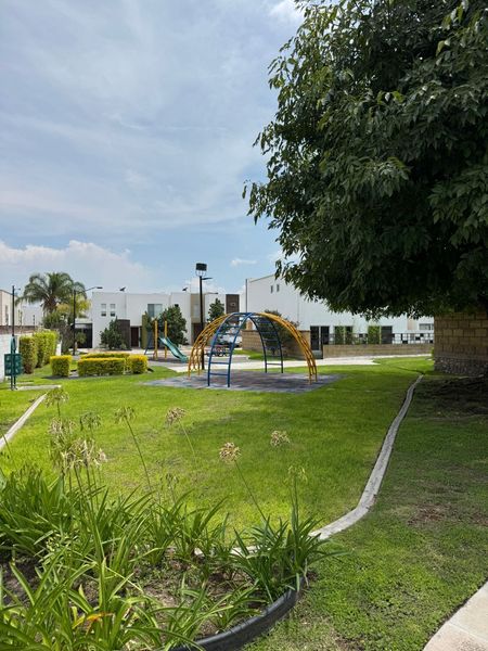 Casa en fraccionamiento privado de 39 casas con amenidades, en Santa Fe juriquilla, en esquina con patio lateral y bodega, 2 recámaras, sala de TV y recámara en planta baja