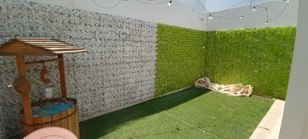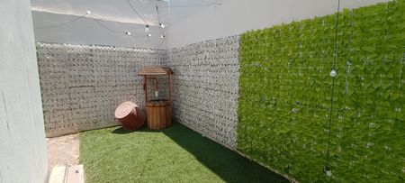 - Patio trasero amplio con terreno excedente y muros de doble altura Equipamiento: