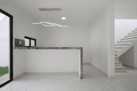 Edificada en un terreno de 106 m2 y distribuida de la siguiente manera en dos plantas; Planta baja, sala, comedor, cocina con barra, desayunador y cocina integral con campana, medio baño, área de lavado, amplio jardín trasero, cochera para dos autos.