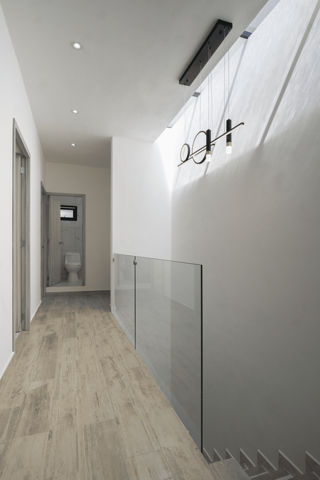 Planta alta; una recamara principal con closets, vestidor y baño completo, dos recamaras secundarias con closets y un baño completo compartido.