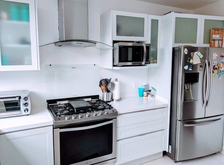 Gran cocina equipada con desayunador integrado, en finos acabados.