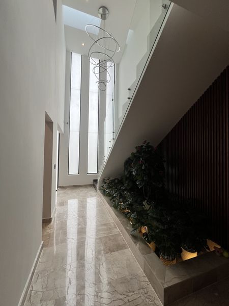 Un recibidor donde te lleva directamente a las escaleras con barandal cristal templado, después encuentras una recámara con baño completo completo,