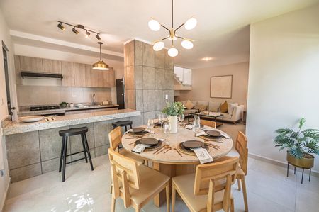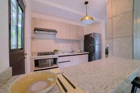 Características destacadas: Cocina moderna con barra desayunador de granito, gavetas en alacena, parrilla de gas integrada y campana para hacer de tus comidas toda una experiencia.